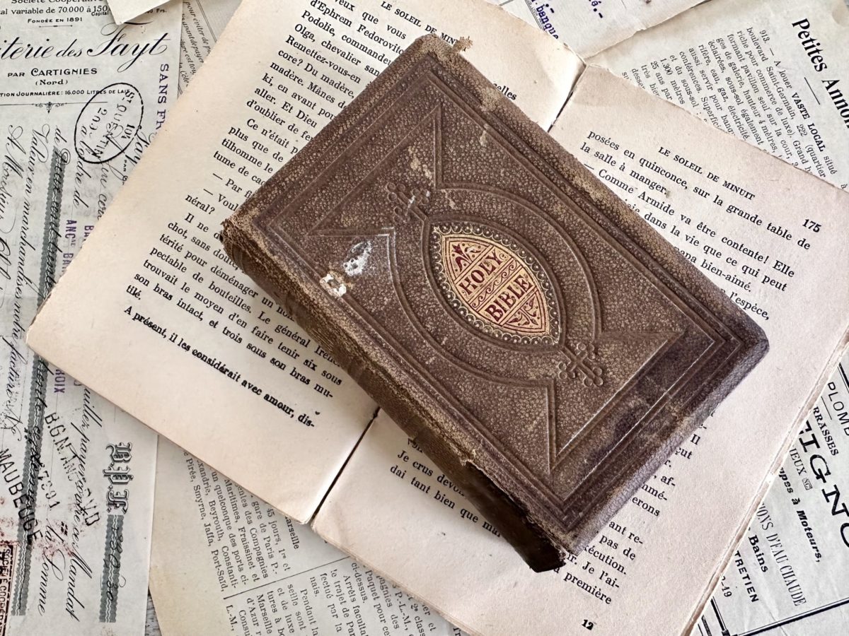 イギリス・ロンドンで印刷された小さな革装の聖書。