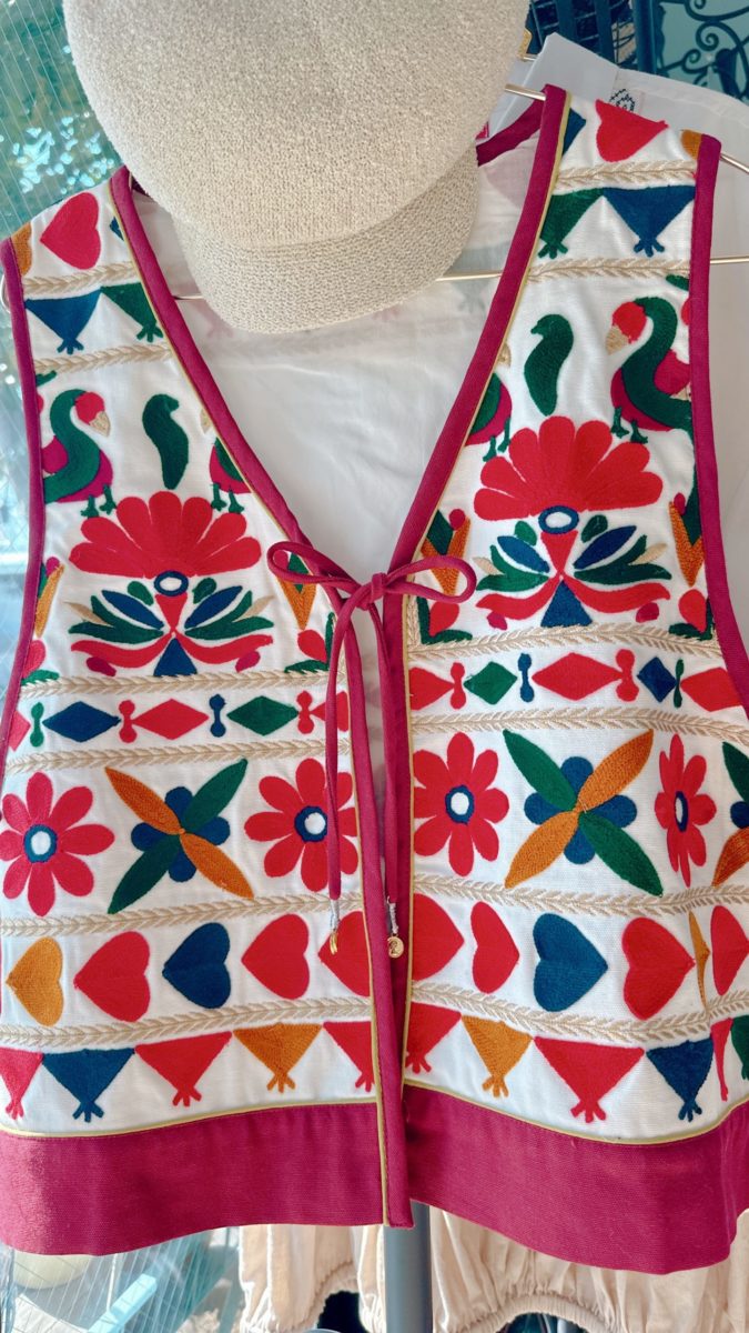 やさしい色彩の刺繍がふわりと浮かび上がるフォークロアベストが入荷しました!