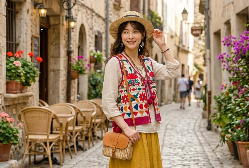 遠い土地の手仕事が、毎日の暮らしの中にそっと息づくようなベスト。