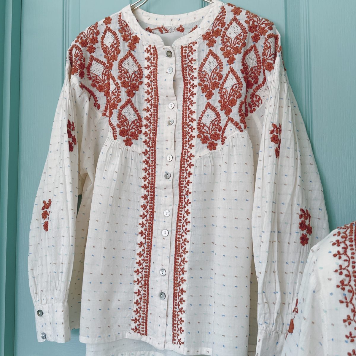 刺繍に奥行きと軽やかさを与えています。
