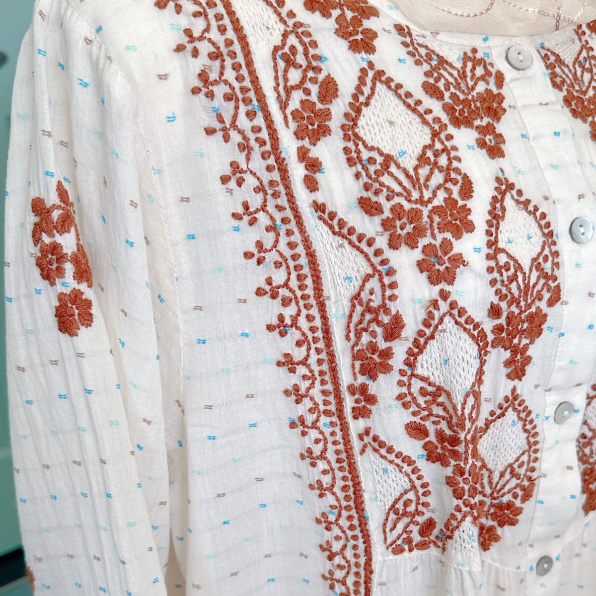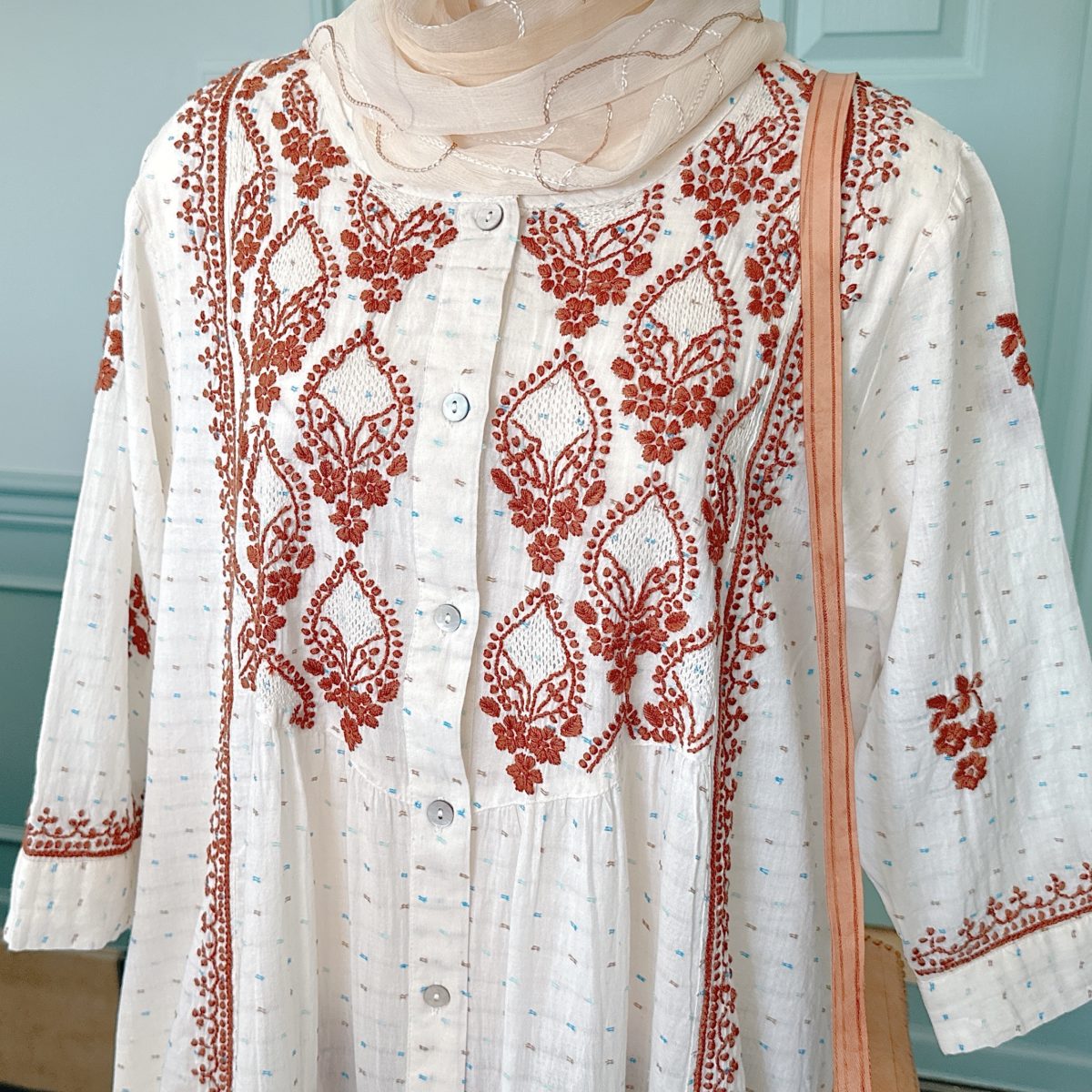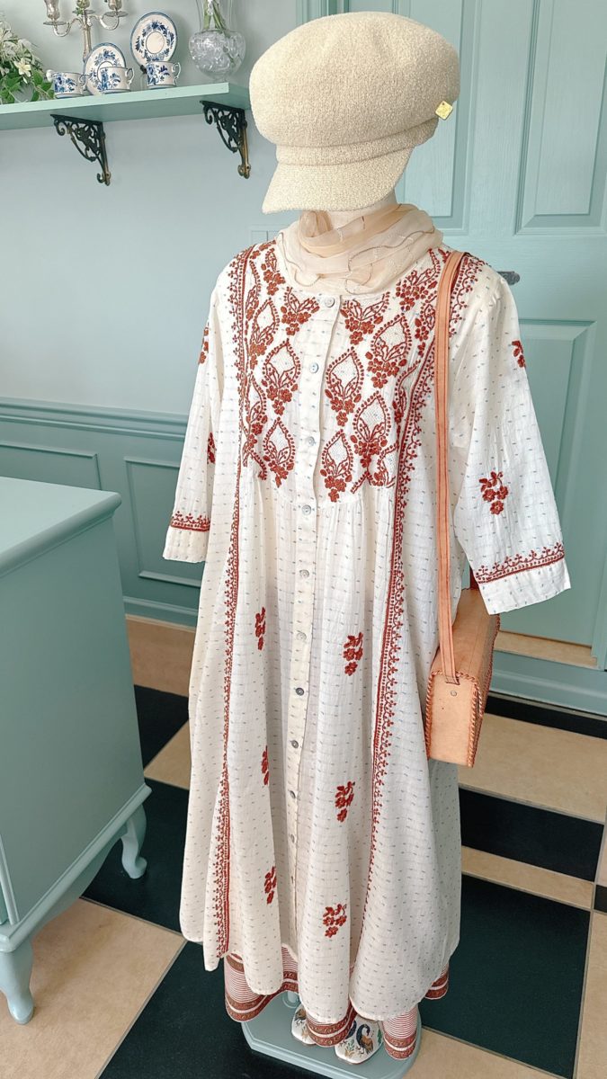 4. インド・ラクナウ地方の伝統刺繍 「チカンカリ」ワンピース