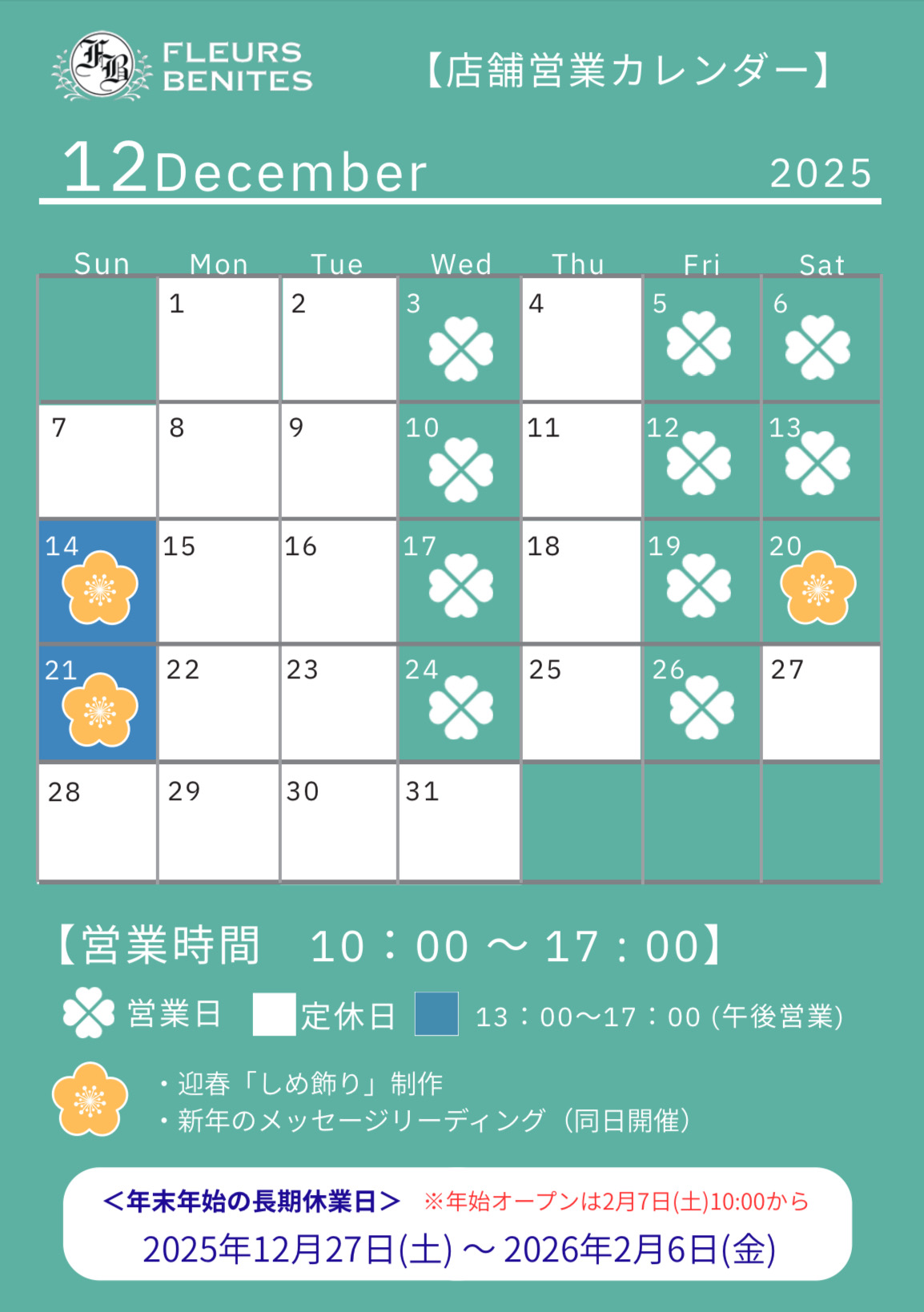 12月の営業カレンダー